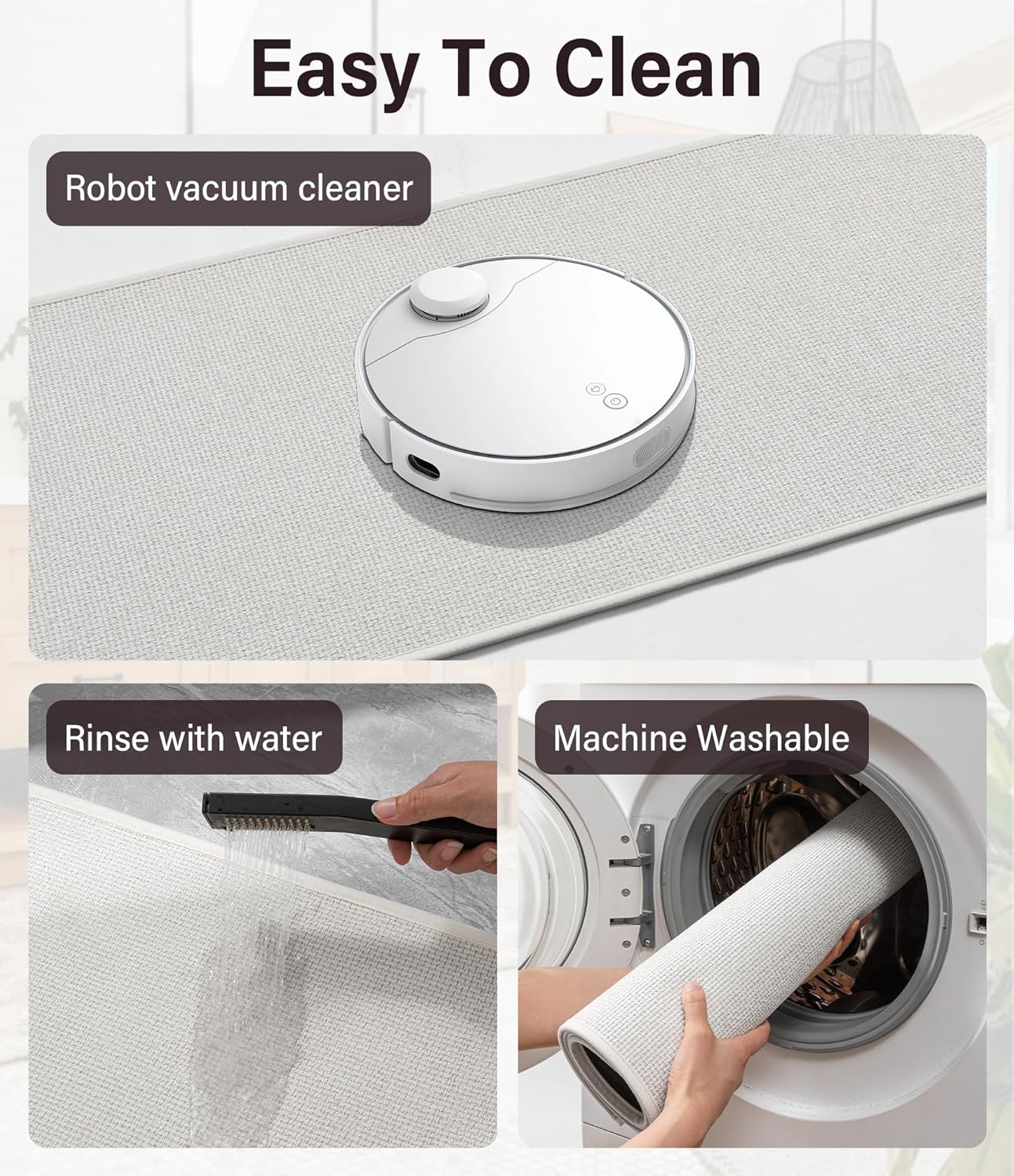 - [Easy to Clean]: Surface dirt rinses away effortlessly under cold water. For deeper cleaning, machine wash cold is recommended. Avoid chemical cleaners and bleach to preserve the mat's quality.