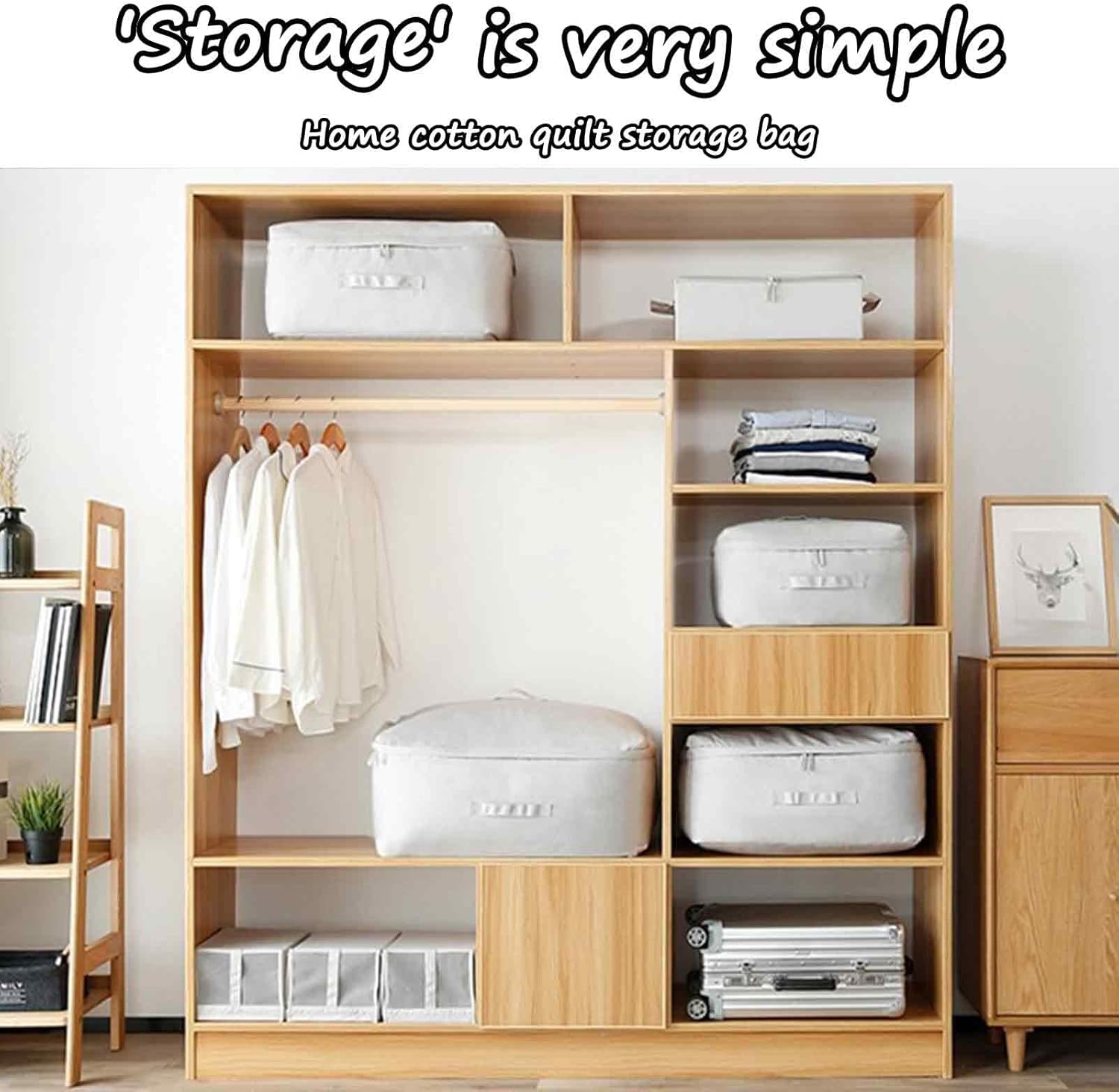 - Convenient handle: Our Oxford cloth zipper storage bag comes with a convenient handle! Use the side handle to lift from the wardrobe, and if you move your large canvas bag, use the top handle to carry it. Easy to use large storage bag for storing bedding, clothing, heavy-duty linen products, or travel air cushions!
