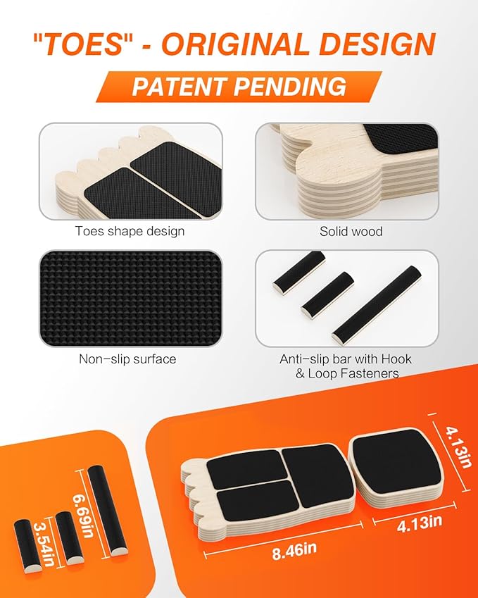- 【PREMIUM BIRCH PLYWOOD & GRIP-TECH SURFACE】 This ankle balance board features multi-layered birch plywood + non-slip silicone pads + adjustable bars with hook and loop fasteners, delivering exceptional stability for single leg balance board workouts.