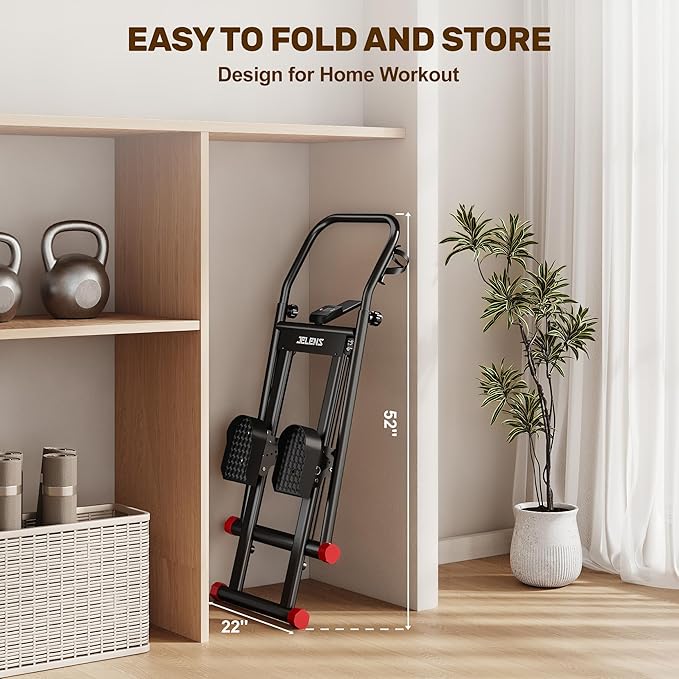 - Easy to Move & Store: This stair stepper has a simple structure and is perfect for small living rooms or bedrooms. When not in use, it can be completely folded up to save space. It weighs only 27 pounds, can easily be moved at your home gym.