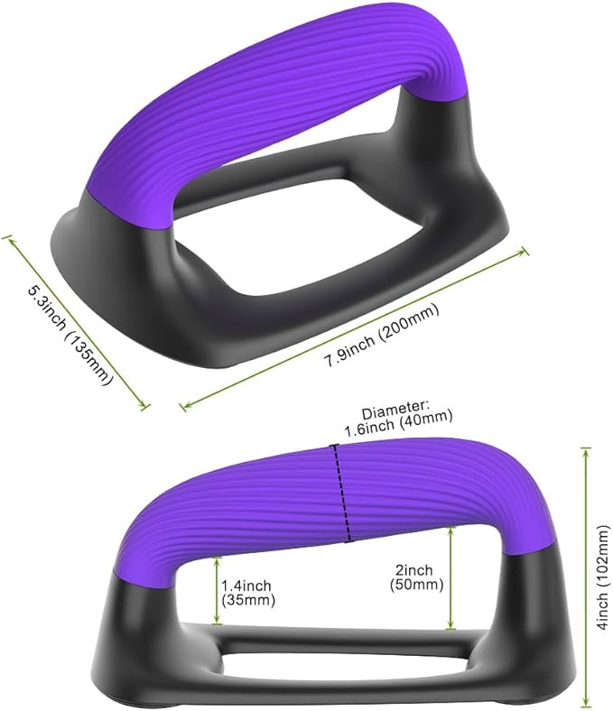- Wide Push-Up Grip for Comfort: Each push up handle is 1.6 inches wide and ergonomically shaped to fit your palm. The soft plastic push-up handles provide a secure, non-slip grip, minimizing hand fatigue and maximizing comfort during pushups and push-up bar workouts