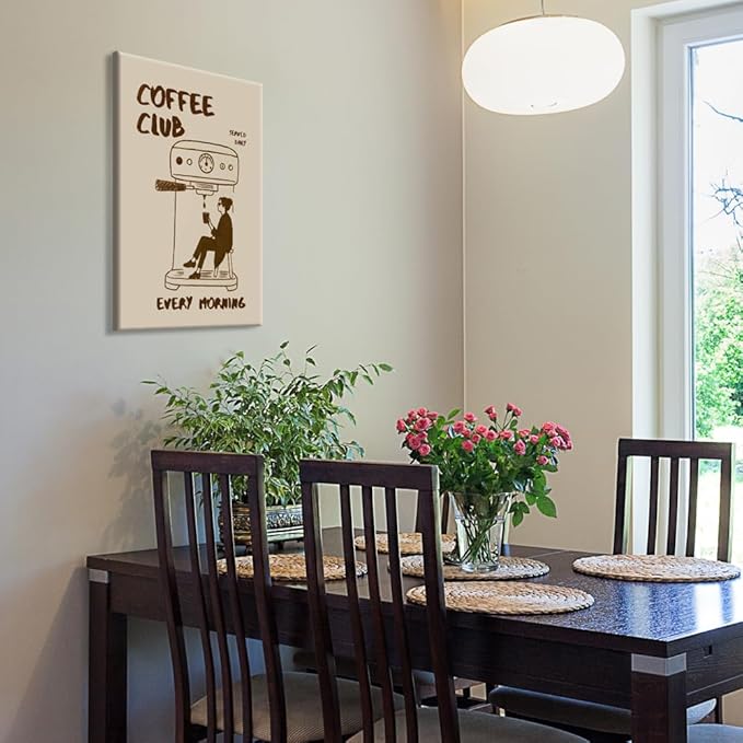 - This hand drawn poster features a charming style, with large coffee machines and ladies sitting waiting for coffee outlined in warm brown lines, creating a cozy and intimate atmosphere of coffee time. Just like a small story about enjoying coffee in daily life, it is perfect for people who love slow time and warm moments of coffee. Whether placed in the kitchen, coffee corner, or office, it can bring a gentle artistic coffee charm.