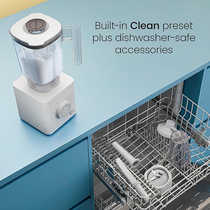- TWO WAYS TO CLEAN: Keeping this blender for kitchen clean is a breeze. Either run the “Clean” preset with soap and water or throw the accessories directly into the dishwasher and avoid any hassle. The innovative blunt-blade design ensures safety while cleaning without sacrificing performance.