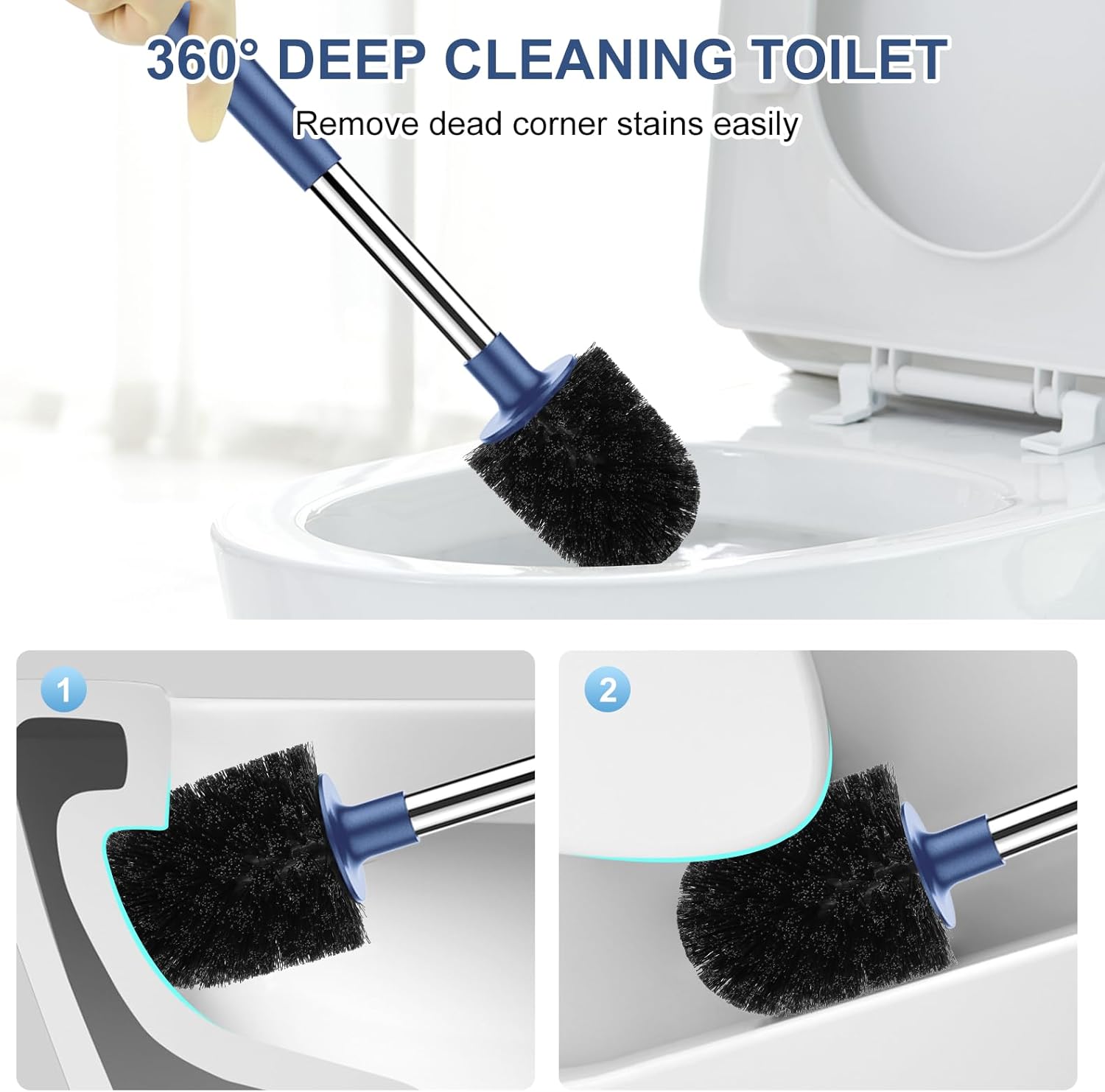 - UPGRADED DURABLE BRISTLES: The bristles are made of nylon bristles, strong resilience, not easy to deform, will not damage the inner wall of the toilet bowl, 360 ยฐ deep cleaning, effectively clean each hard to touch the edge of the toilet bowl