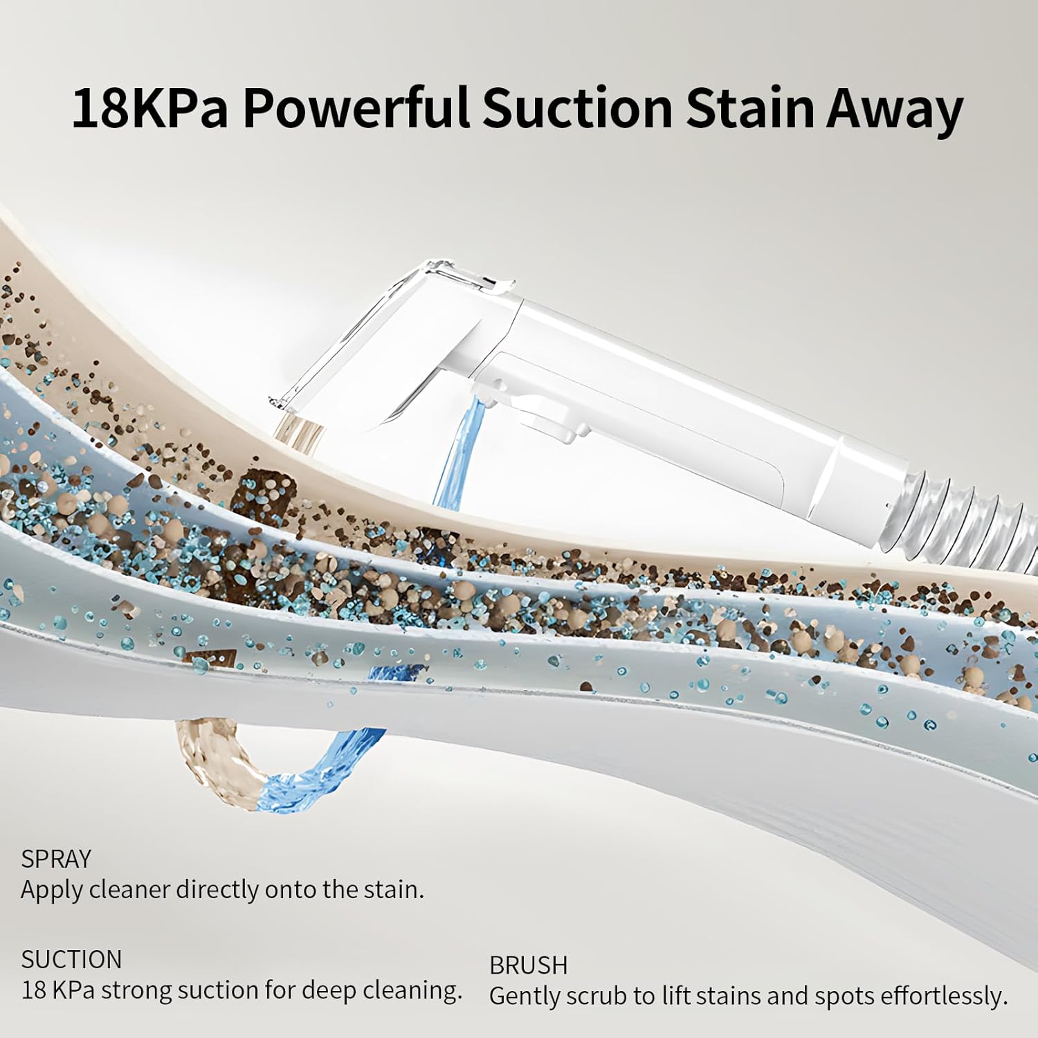 - 【NEW UPGRADE POWERFUL SUCTION】:The COCEAN Portable Carpet & Upholstery Spot Cleaner is equipped with a 500W motor, which can provide a super suction force of 15Kpa,and you can easily and quickly clean stubborn stains such as dirt, wine, pet feces, etc. on carpets and indoor decorations through spraying, brushing, and suction steps, ensuring that carpets dry quickly after cleaning and quickly return to normal, making your home environment healthier and safer.
