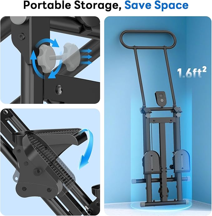 - Perfect for small apartments and spaces: The ERGOLIFE stair stepper with resistance for home folds in just one step, taking up only 1.6 sq ft. It can be slid under a bed or placed in a corner for storage, allowing you to exercise freely in a small apartment.