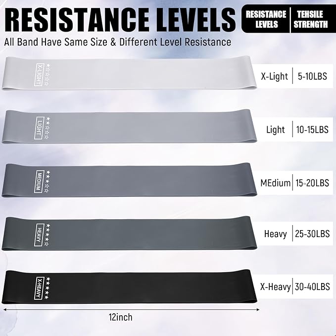 - Multiple Strength Levels to Satisfy You: there are 5 strength levels for the exercise bands, from 10-115 lbs, you can choose them according to your preferences and needs, can be applied for both beginners and experienced people