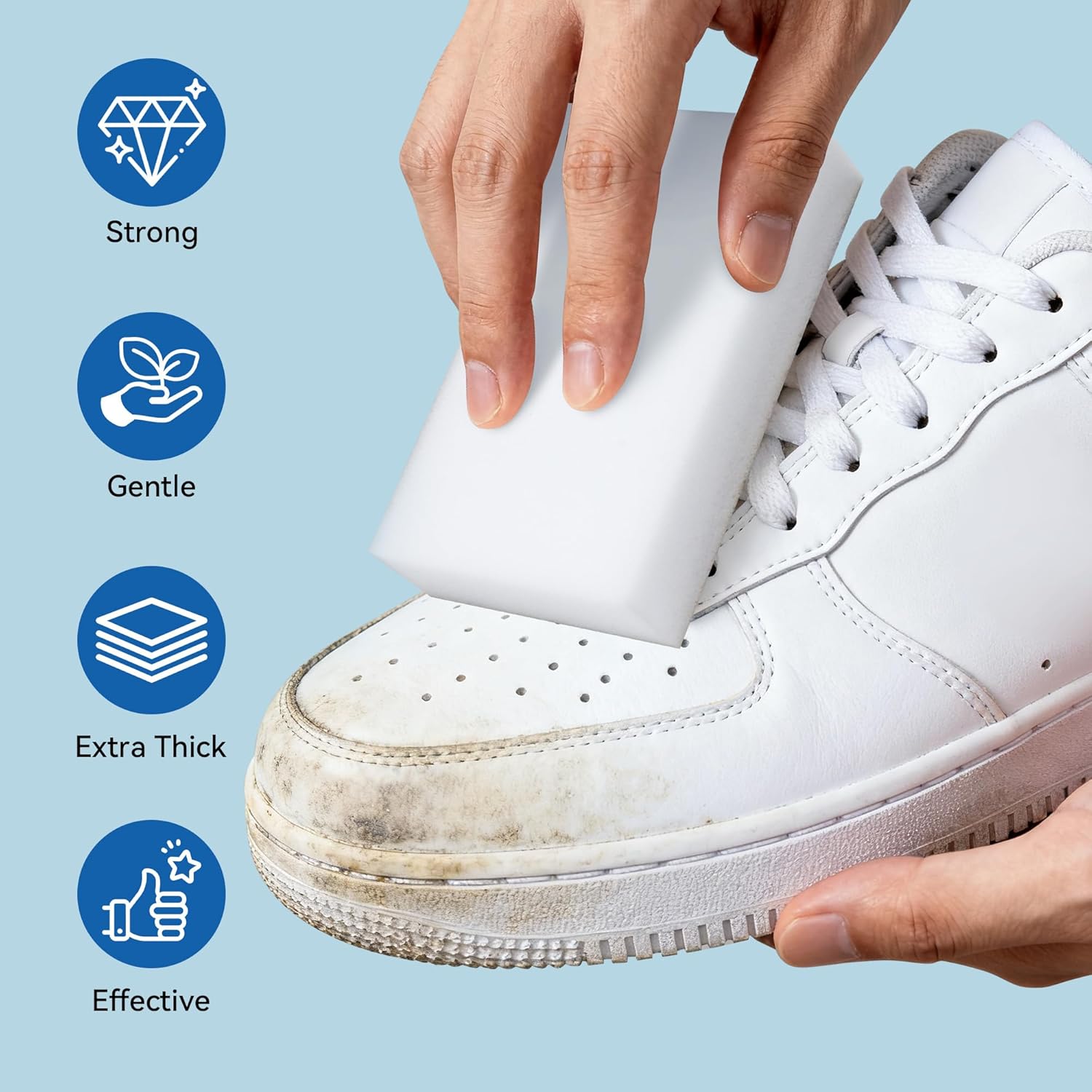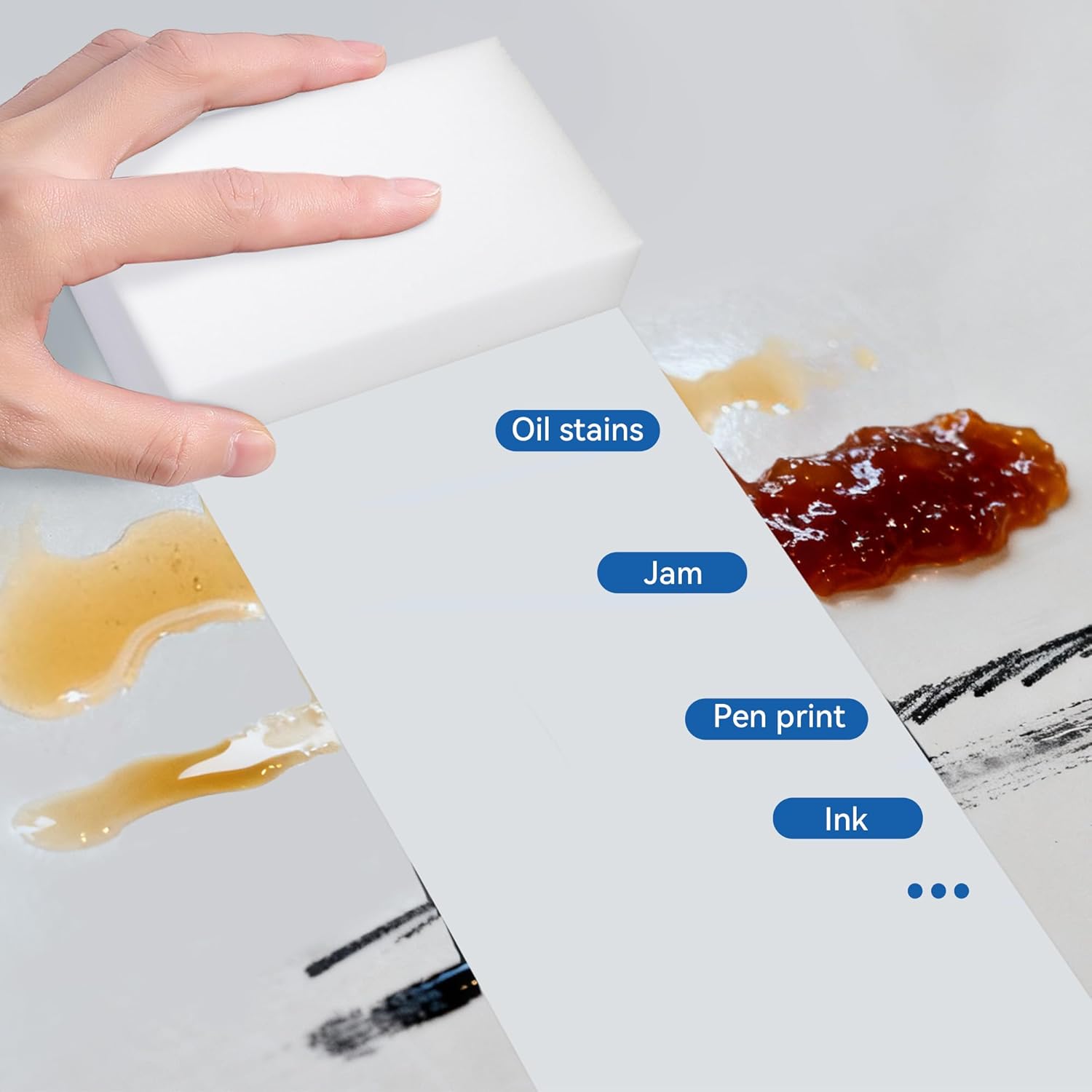 - Multifunctional Cleaner: Our unique melamine sponges effortlessly tackle tough grease, soap scum, and even those set-in stains that seem permanent. Ideal for use throughout your home and beyond—from the kitchen and bathroom to walls, doors, floors, and even your car or shoes. Achieve a deep clean without harsh scrubbing or elbow grease!