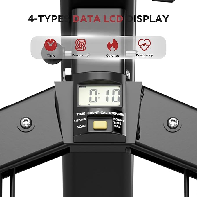 - REAL-TIME PROGRESS TRACKING- The LCD display tracks time, steps, and calories burned in real time, helping you stay motivated during workouts. The clear, easy-to-read interface keeps your fitness goals within reach.