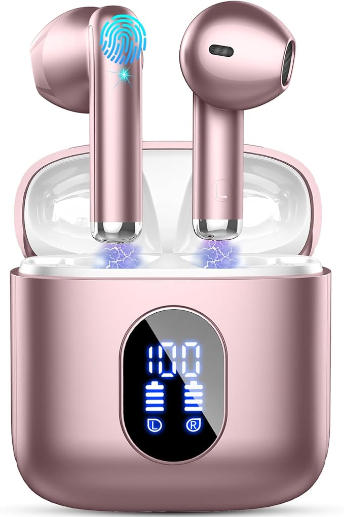 - USB-C quick charging, 30Hrs playtime: The 35g mini charging case provides up to 30Hrs of battery life, which is enough to meet most of your needs (such as sports, entertainment, work, etc.). After 1H of charging, the earbuds wireless Bluetooth can be used for up to 5-6Hrs of continuous use, and the charging case can recharge the headset about 4 times. In addition, the LED digital display conveniently shows the remaining power in the charging case so you always know when it's time to recharge.