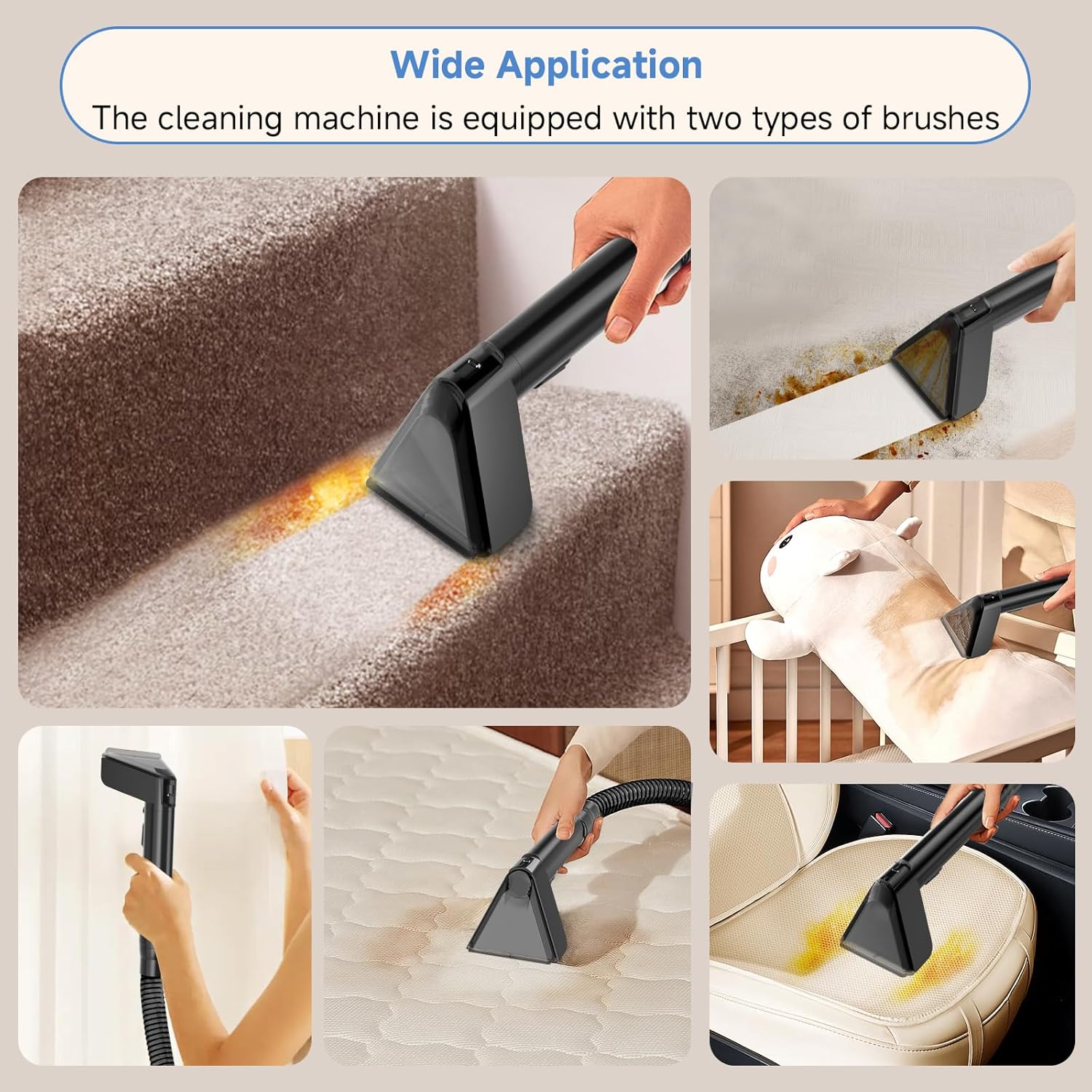 - Wide Application Range: Our upholstery cleaner machine and furniture cleaner machine equipped with a high-performance 450W motor, the cleaning efficiency is increased by 50%. can clean carpets, sofas, blankets, stairs, mats, pet stains, and more. Its scope covers living rooms, kitchens, bathrooms, cars, bedrooms, offices, and other areas. This furniture cleaner machine and carpet spot cleaner machine is a very practical and multifunctional tool, ensuring thorough cleaning across various surfaces