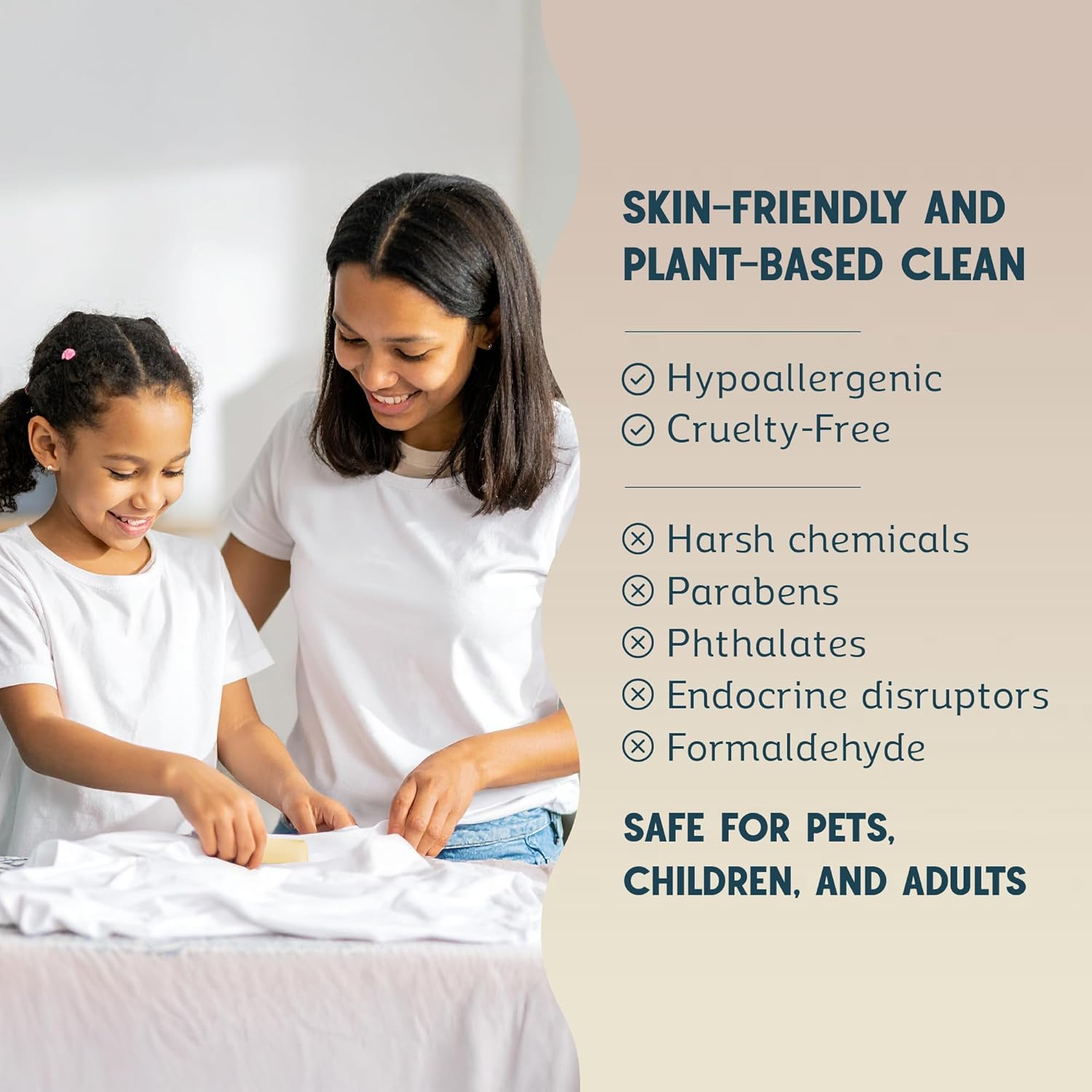 - PLANT-BASED STAIN REMOVAL: This vegan stain remover bar tackles grease, wine, coffee, sweat, grass, and food stains with ease. Made from coconut and palm-derived surfactants, it effectively lifts stains while keeping fabrics soft and damage-free. Free from harsh chemicals, sulfates, and synthetic fragrances, it’s a natural, non-toxic alternative to traditional stain removers, making laundry safer for you and the planet